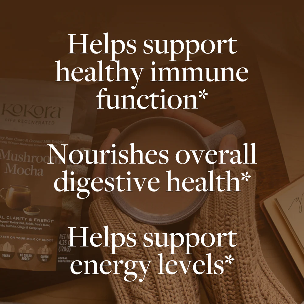 Ashwagandha and Mushrooms are among the most widely consumed herbs today for good reason – they support our response to stress, and they support a healthy immune response.* In today’s stressful environment, Kokora has combined these two herbal allies with other adaptogenic herbs into concentrated yet pleasant tasting herbal powders. In each 4-gram serving, you have a powerful and effective daily support system.* Try as a hot beverage in water or in milk of your choice, with a sweetener like honey or maple if desired.
