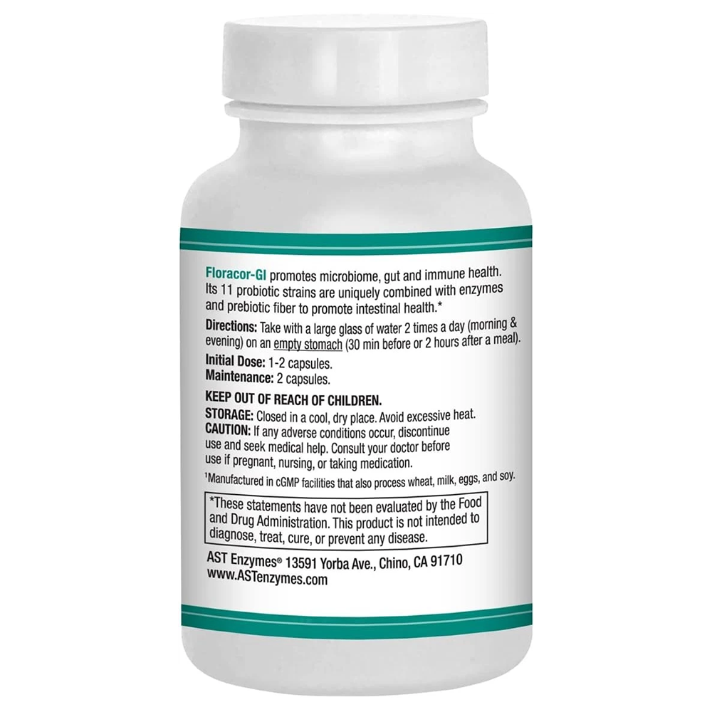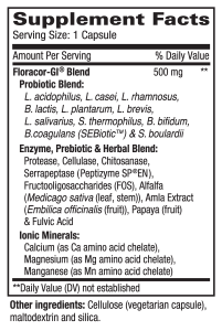 Floracor-GI promotes microbiome, gut and immune health.Its 11 probiotic strains are uniquely combined with enzymes and prebiotic fiber to promote intestinal health.*