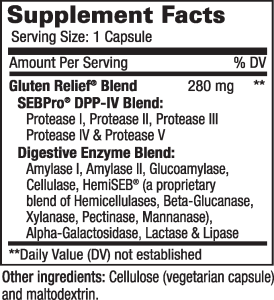Side effects with Gluten Relief® Plus are rare. Mild cramping, bloating or gas may occur. Starting off at a low dose can minimize any possible side effects. Side effects should clear with regular use, after a tolerance is established.*