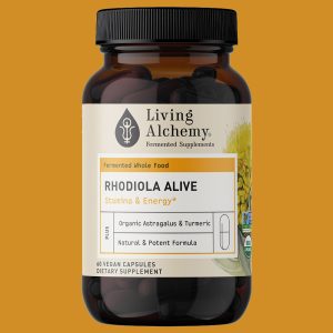 Through fermentation in a kefir-kombucha living culture with our unique Symbio® method, we enhance the bioactive compounds and natural healing potency of rhodiola while also making it easier for your body to absorb and digest.*