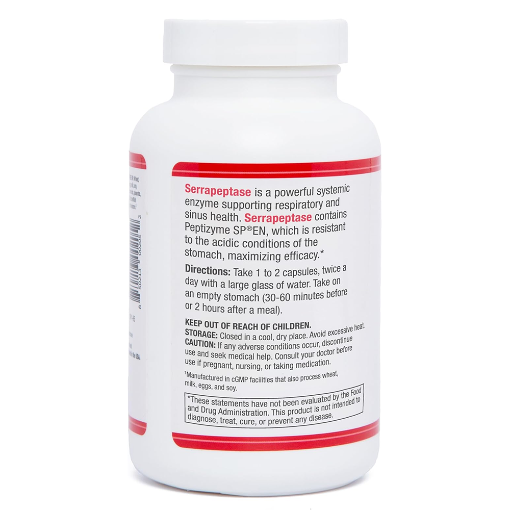 The use of Serrapeptase has not been shown to exhibit detrimental effects, long term or short term. Minor side effects may vary. Gastrointestinal disturbances have been reported by a small percentage of new users, but once the dosage is adjusted, tolerance is maintained. Minor allergic reactions, like reddening of the skin, are also rare occurrences, and can be seen with extremely high doses. There are no known interactions with prescription or over the counter drugs while using systemic enzyme therapy. However, it is recommended that you consult with your physician about starting systemic enzymes, particularly if you are on blood-thinning medications, or are pregnant or nursing.*