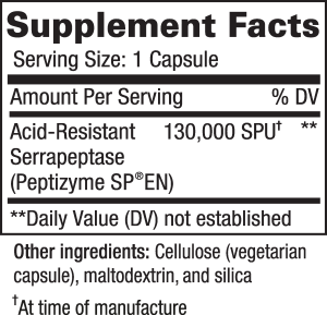 A potent fibrinolytic enzyme, Serrapeptase promotes a healthy response to inflammation. Our Serrapeptase contains Peptizyme SP®EN, which is resistant to the acidic condition of the stomach, maximizing efficacy.*